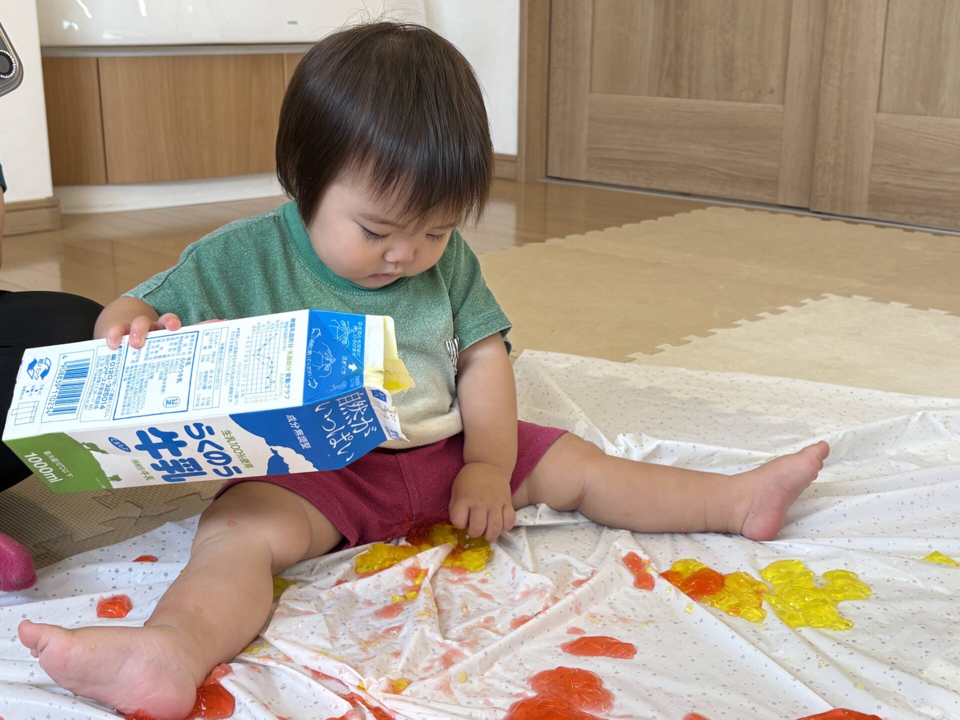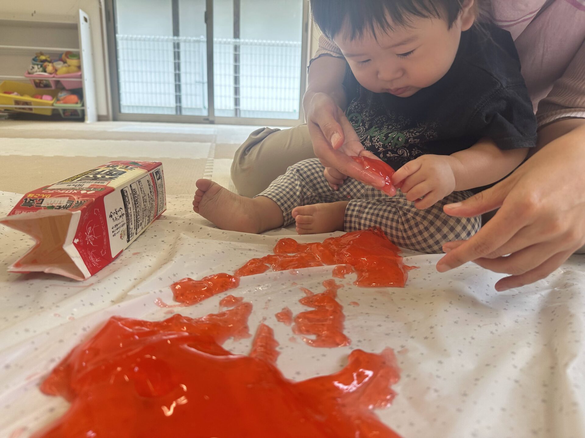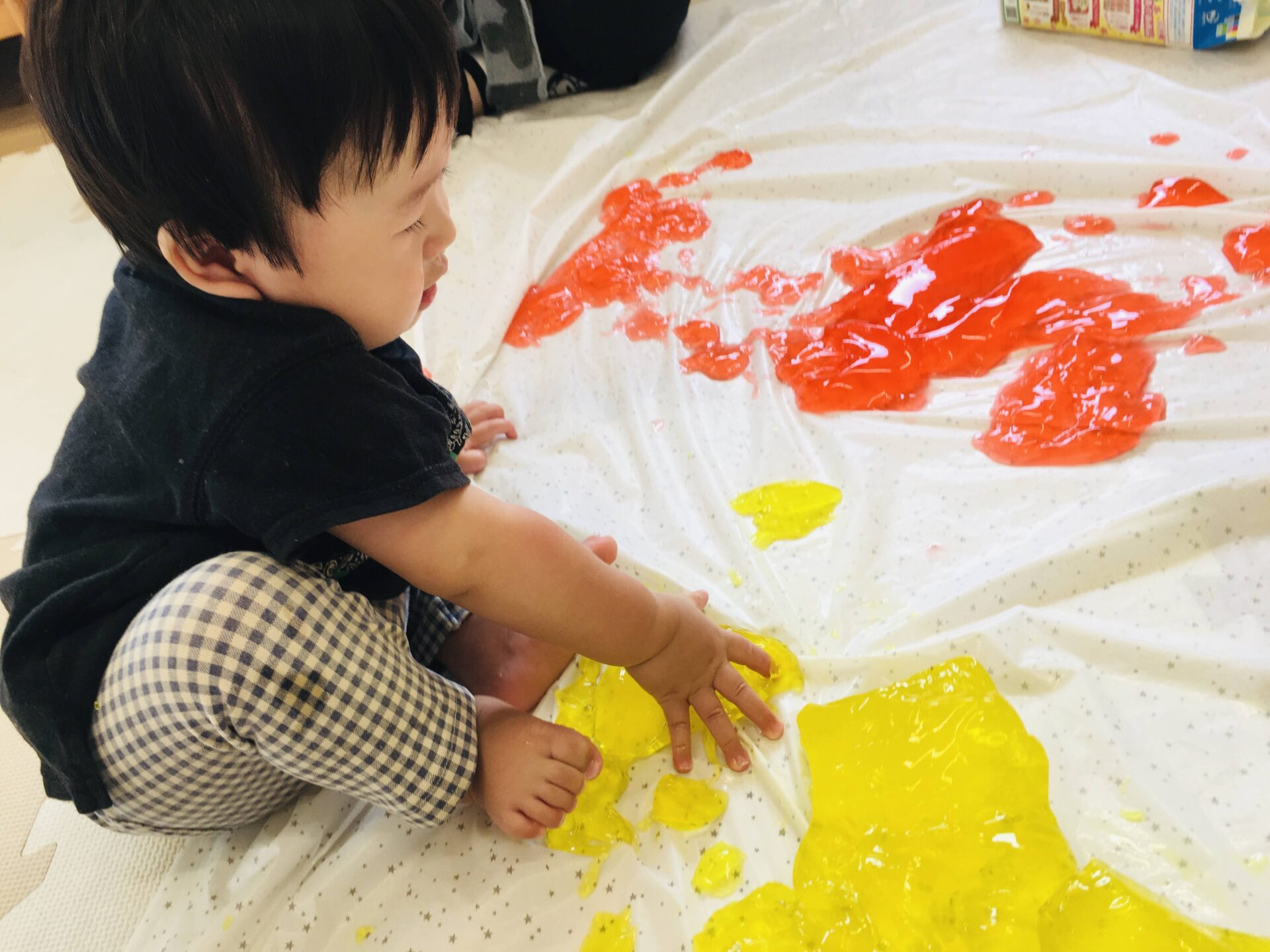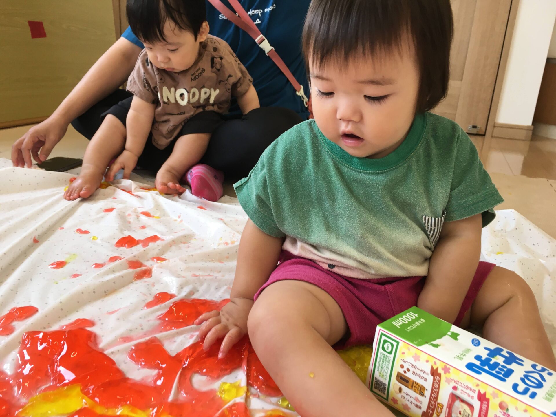 感覚遊びを楽しんだ0歳児さんと1歳児さんたち😊
