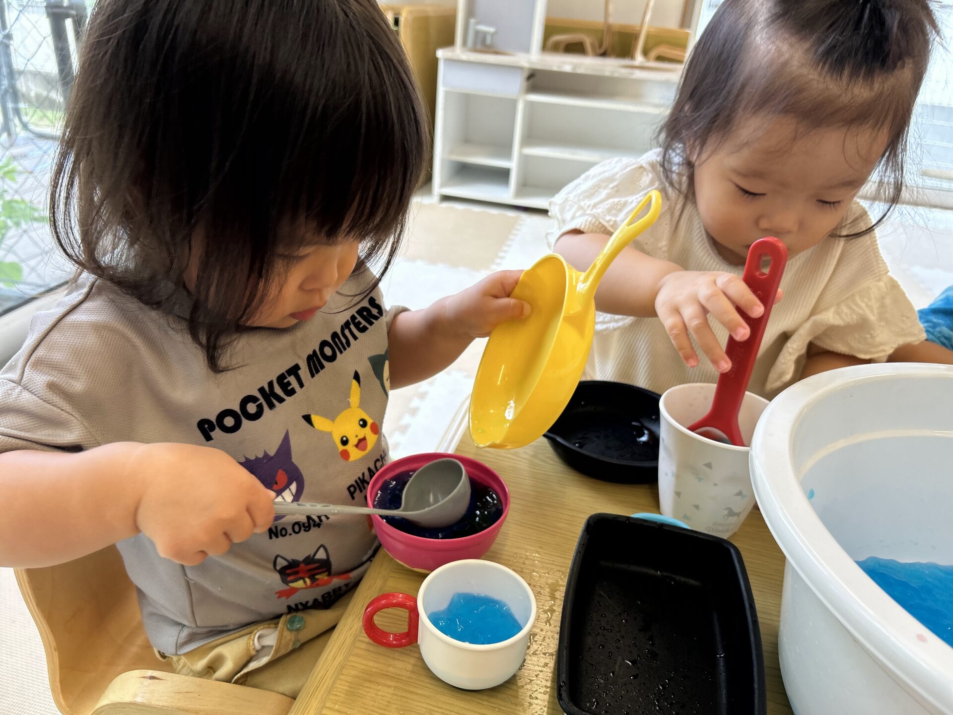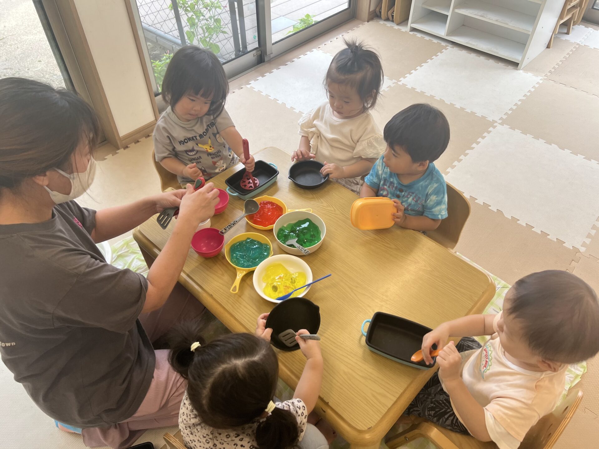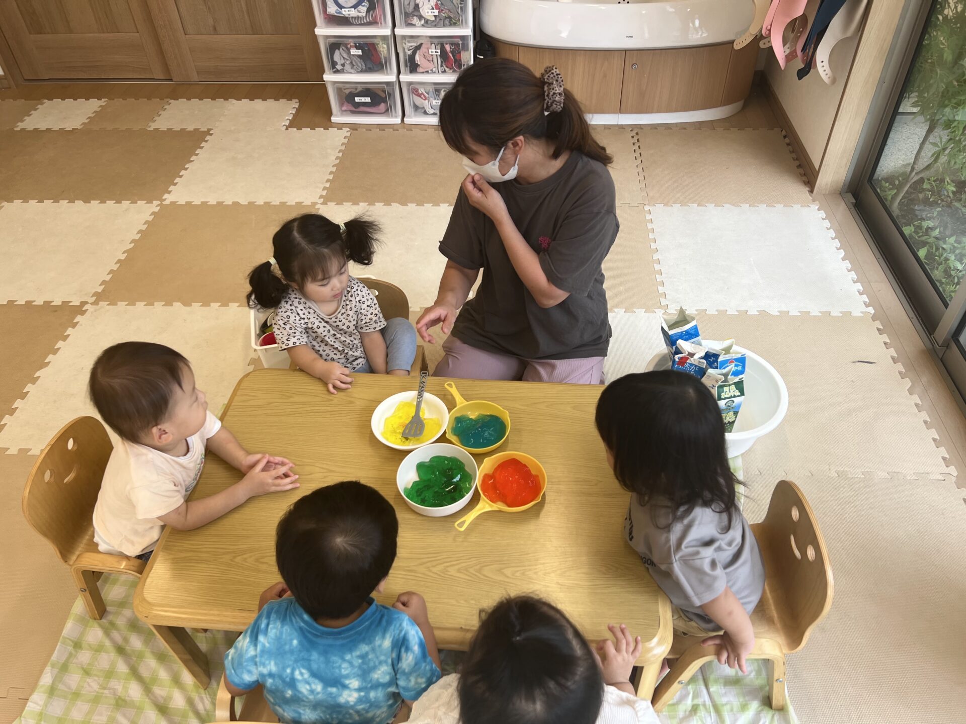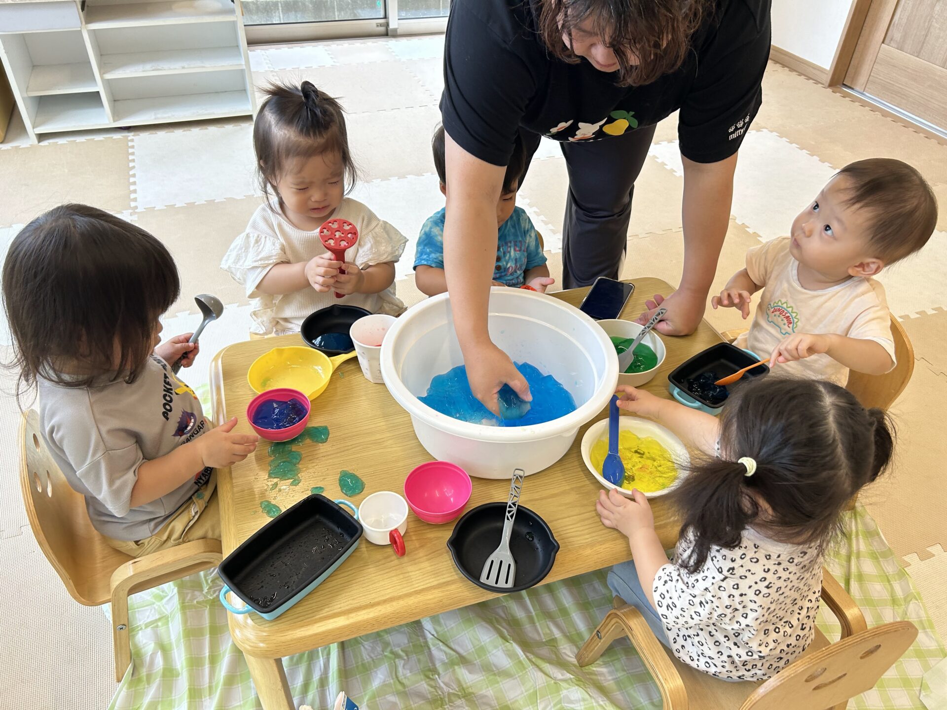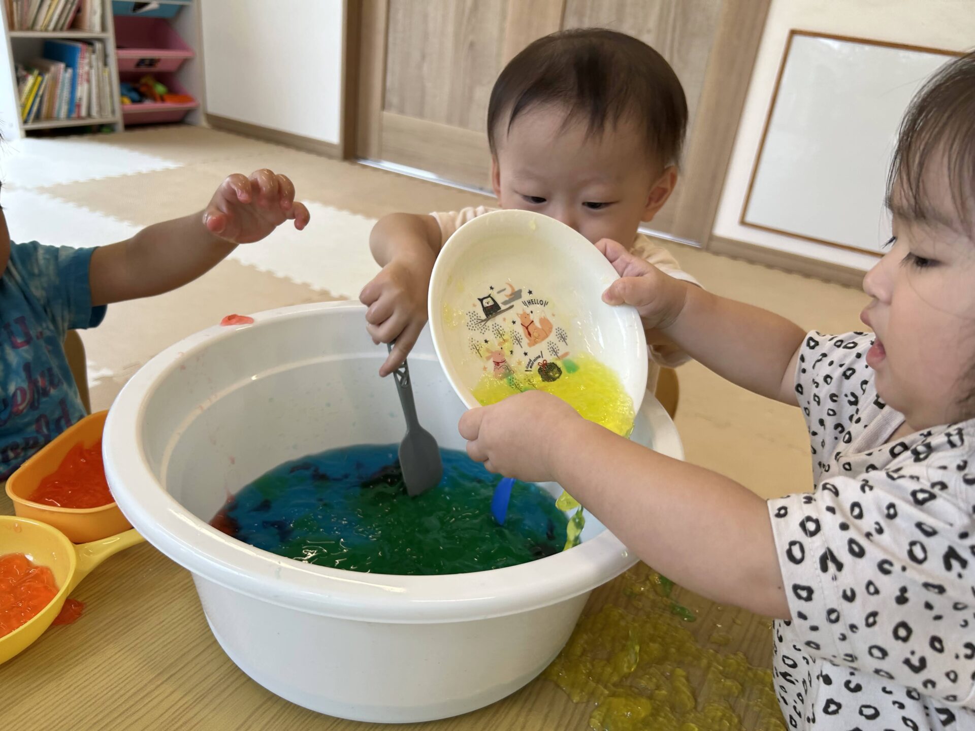 感覚遊びを楽しんだ0歳児さんと1歳児さんたち😊