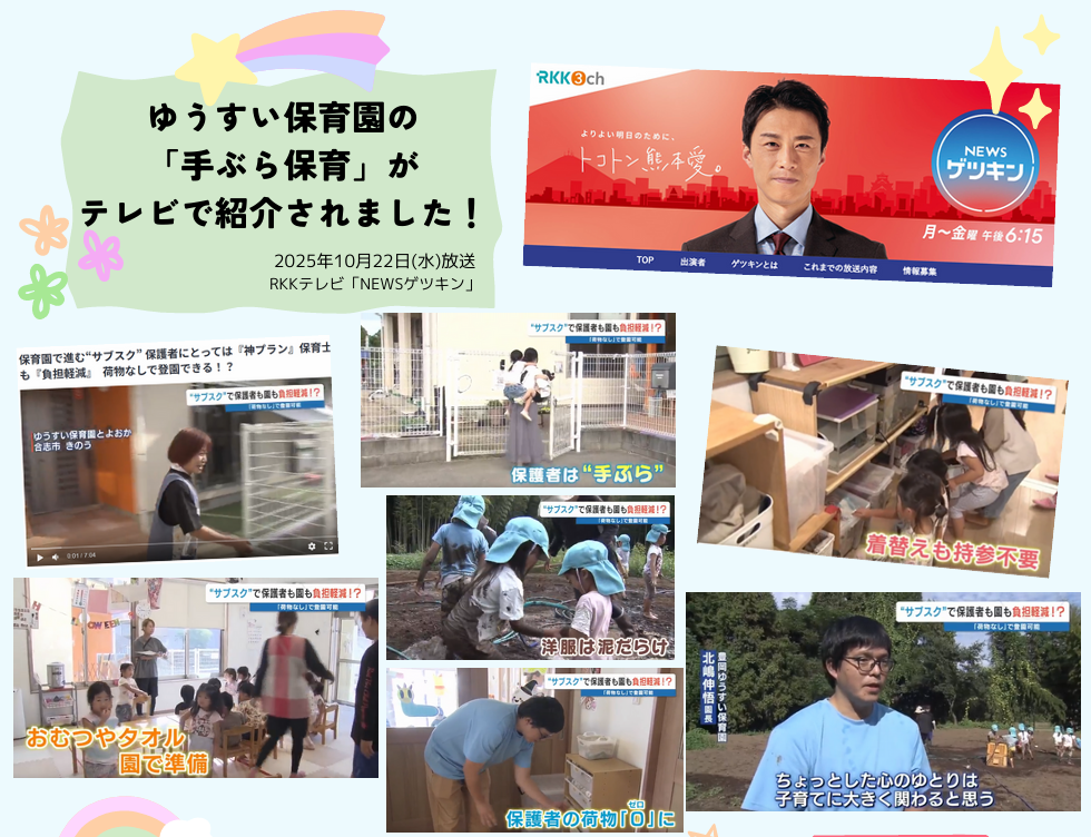 ゆうすい保育園の【手ぶら保育】が特集コーナーで紹介されました。