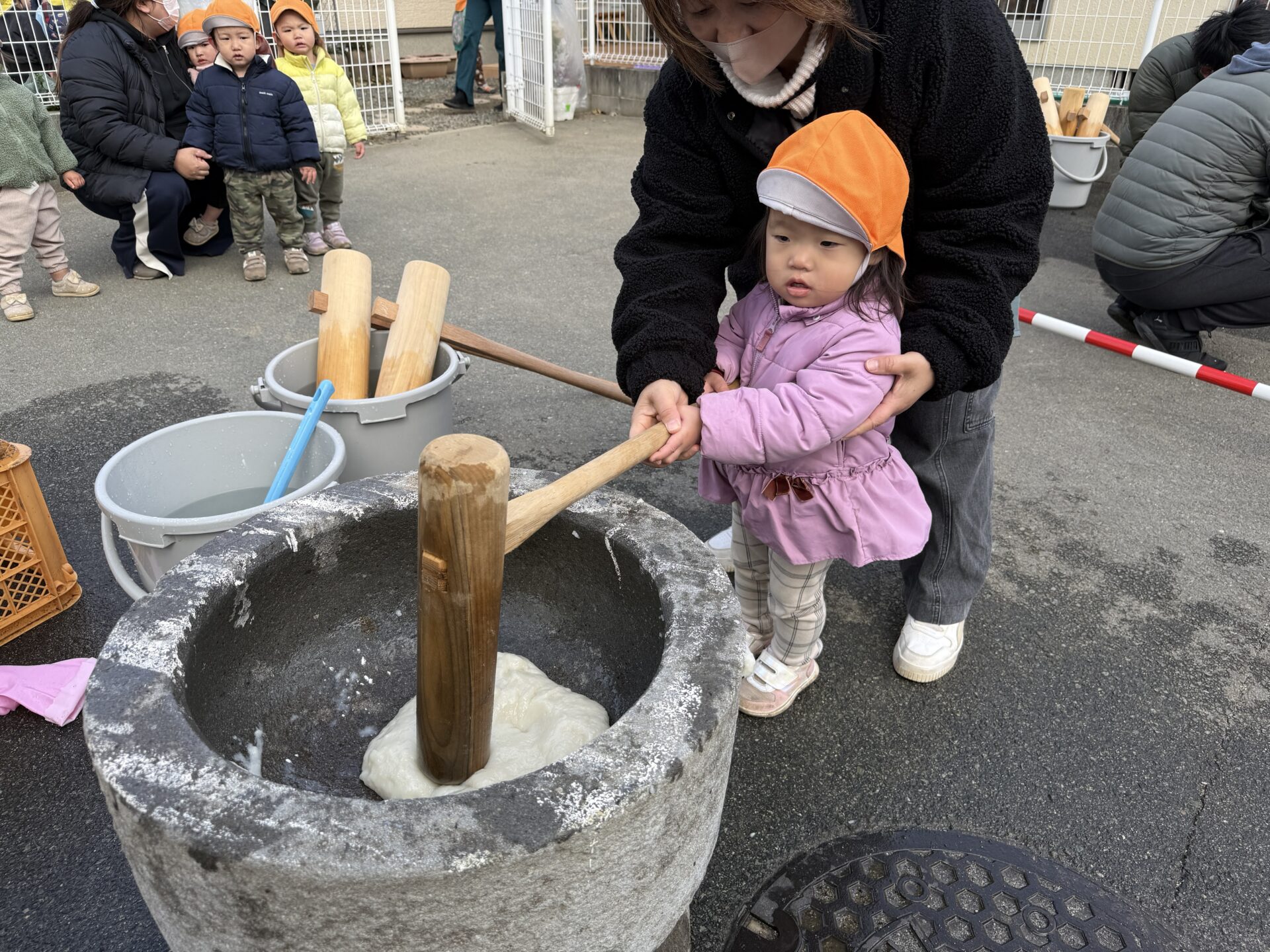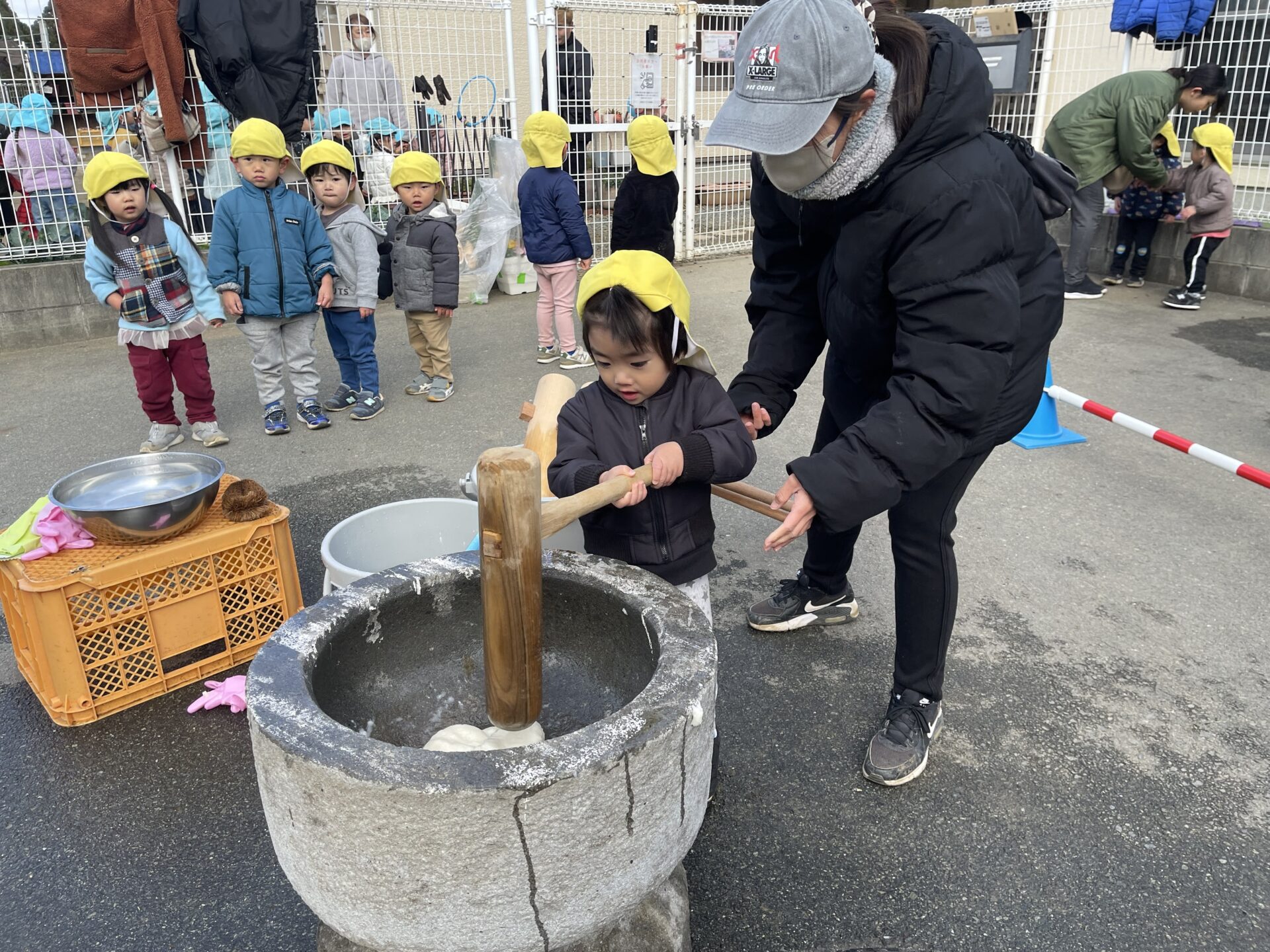 石臼と杵でのお餅つきは貴重な経験となっているかと思いますが