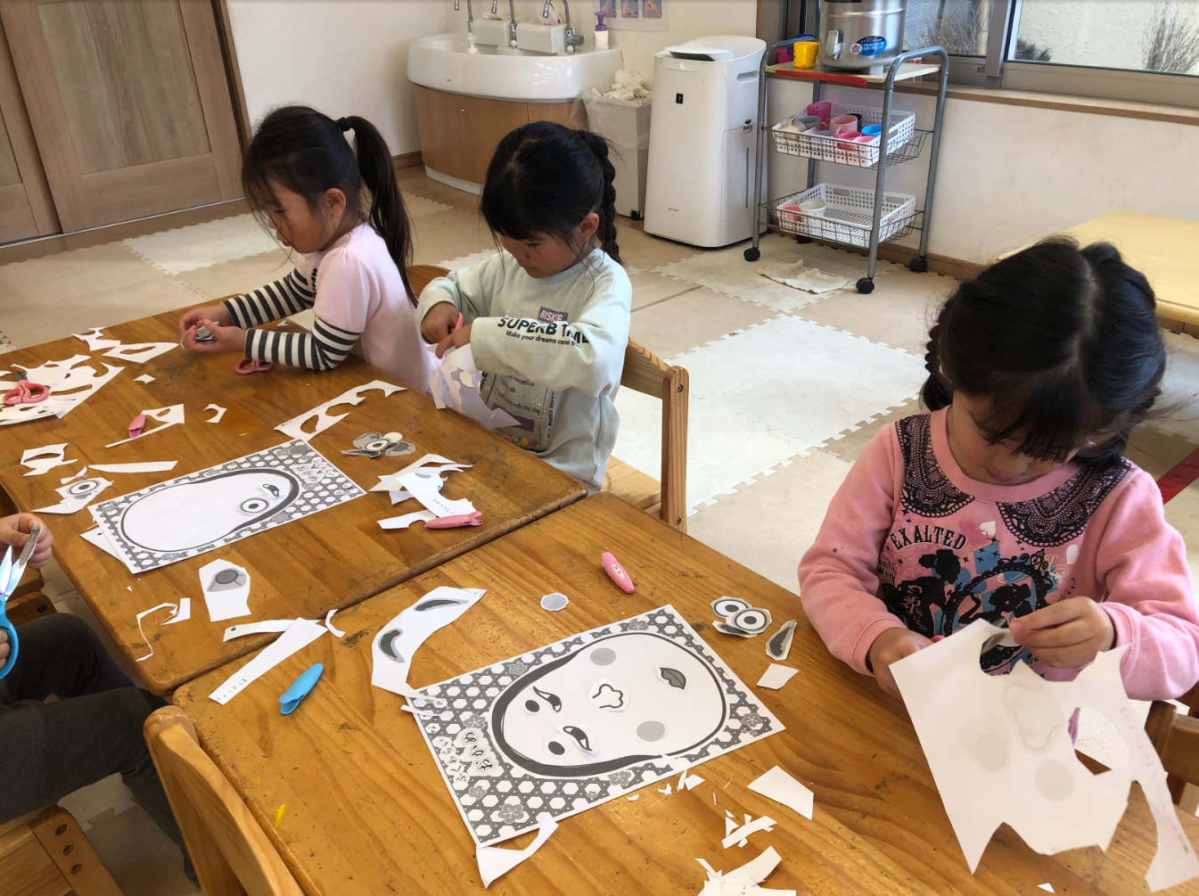 以上児さんたちは自分でパーツを切って楽しんでいます